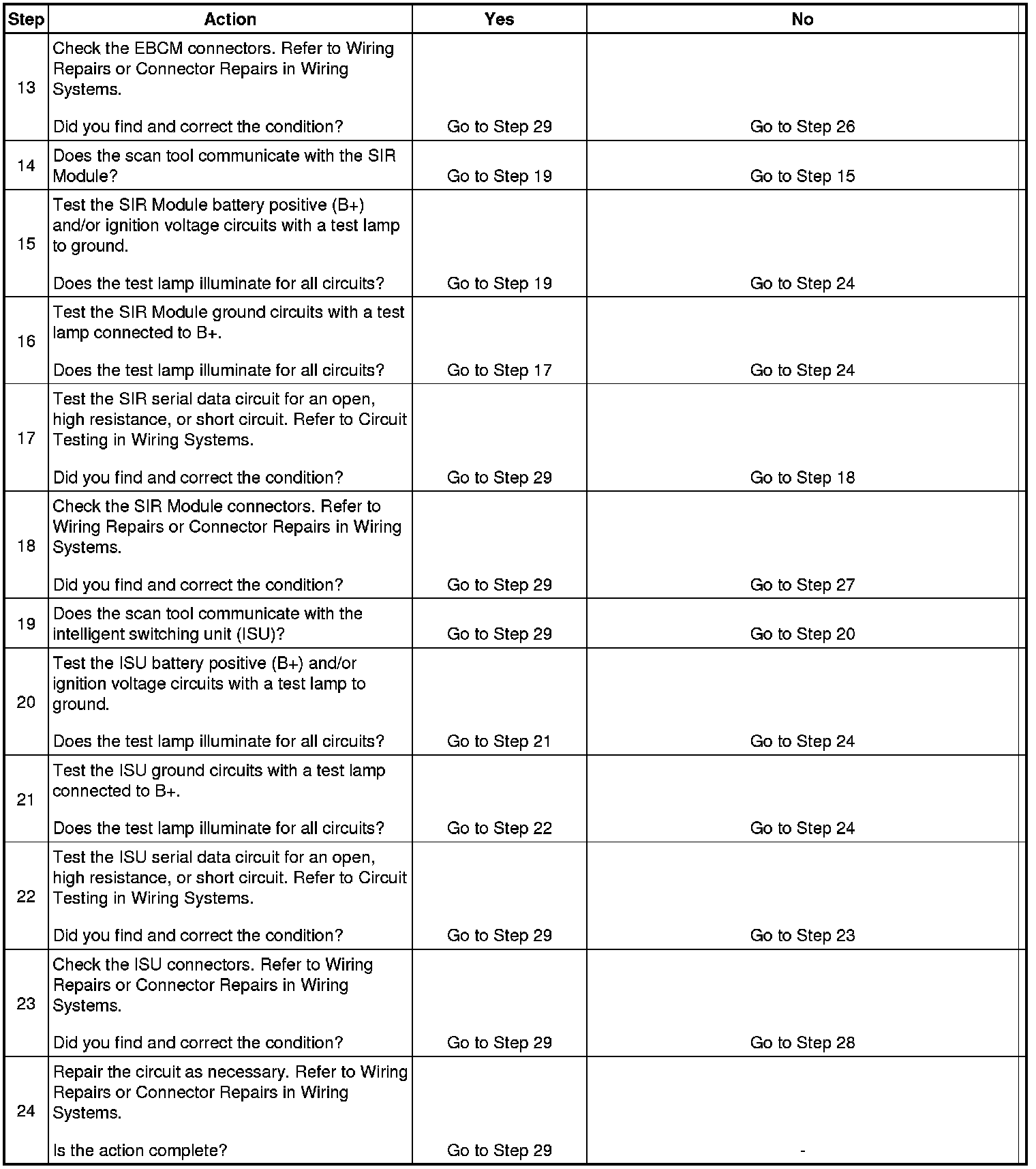 14. This step checks to see if the SIR system is not communicating with the scan tool.