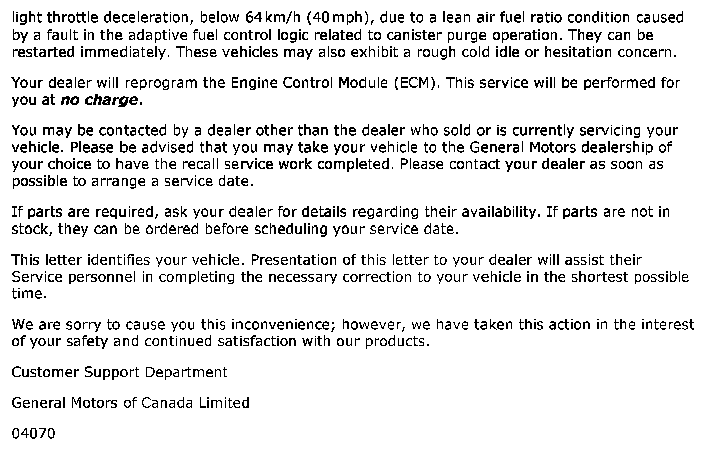 Recall - ECM Update For Engine Stalling