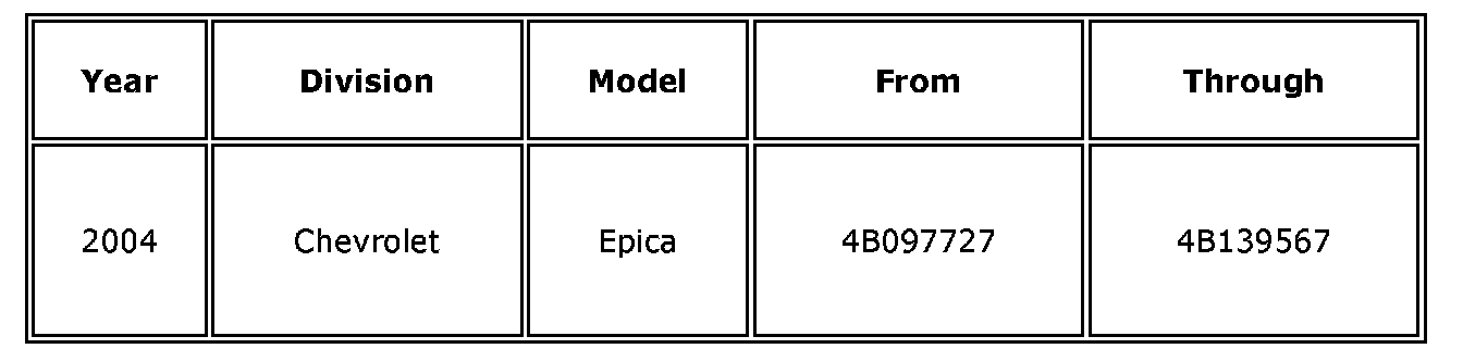 Involved are all 2004 Chevrolet Epica model vehicles equipped with a 2.5L L6 engine (VIN L - RPO LBK) and built within these VIN breakpoints: