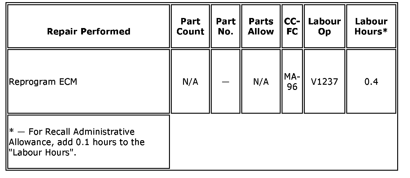 Canadian dealers should refer to the Canadian distribution of the bulletin for detailed claim information.