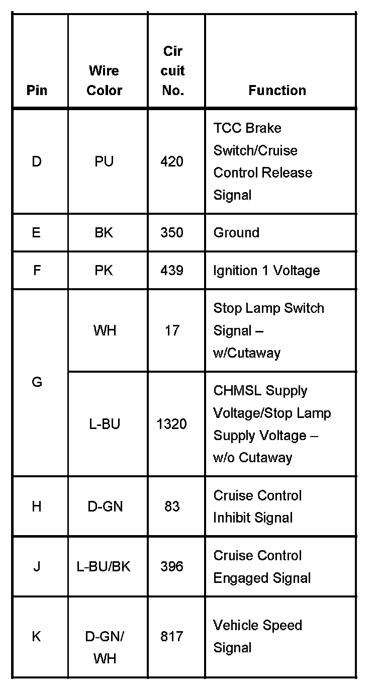 Cruise Control Module (CCM) (Without RPO Code JL4) Part 2:
