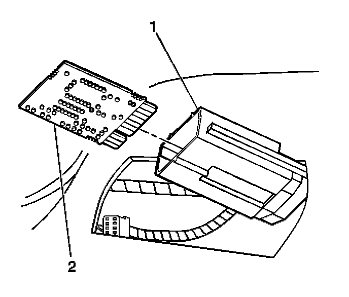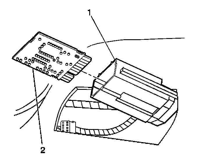 4. Remove the HVAC control processor (2) from the HVAC processor case (1).