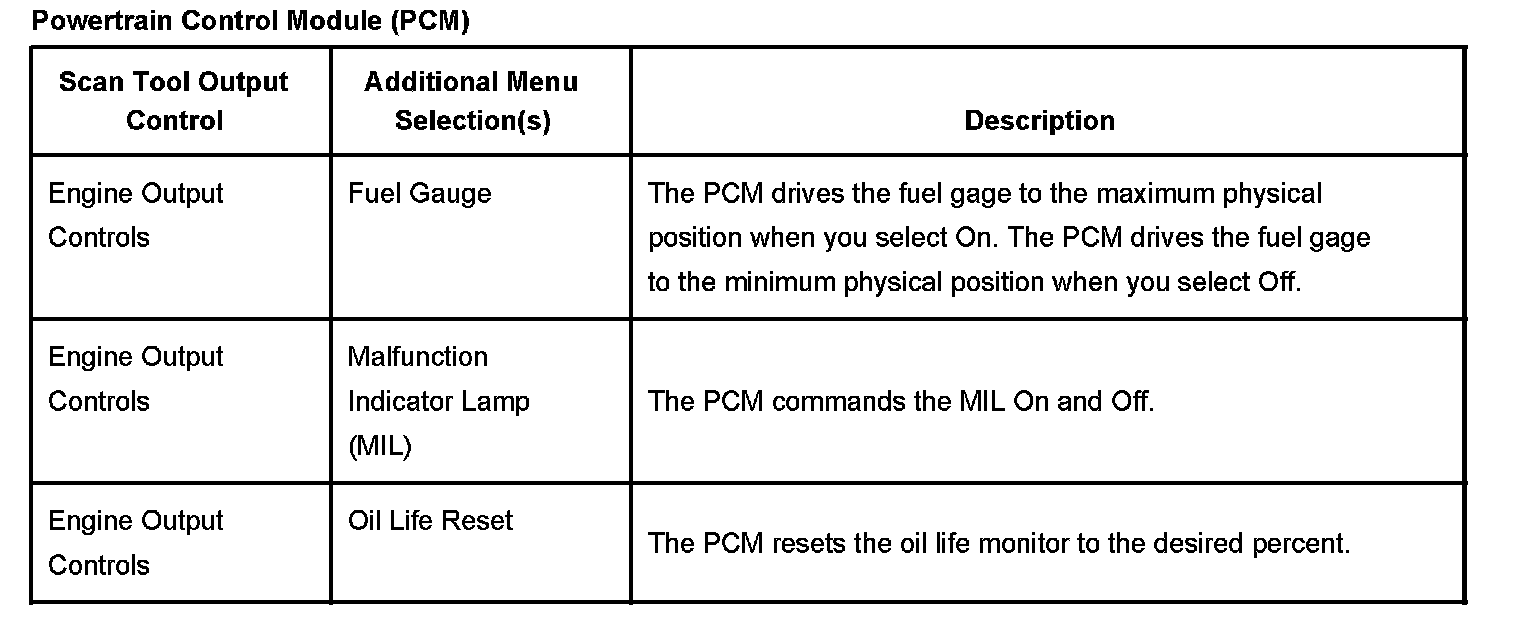 Scan Tool Output Controls - Powertrain Control Module (PCM)