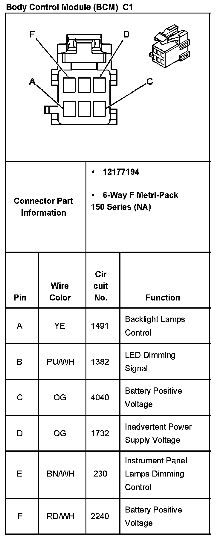 Body Control Module (BCM) C1