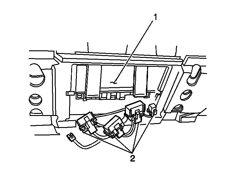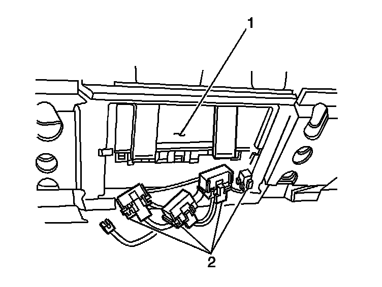 3. Release the tabs (2) retaining the BCM (1) to the bracket.