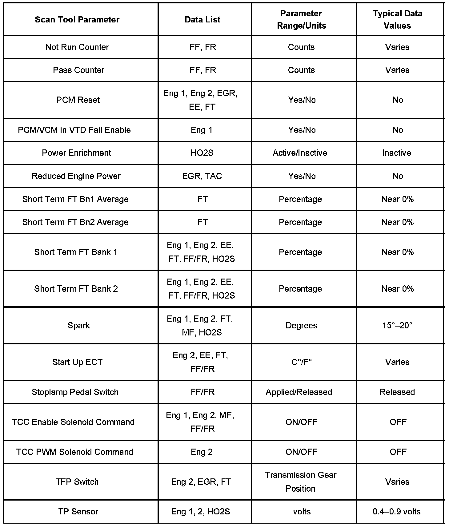 The column labeled Data List indicates where a parameter can be located on the scan tool. Refer to the scan tool operating manual for the exact locations of the data lists. The following is a description of each term listed: