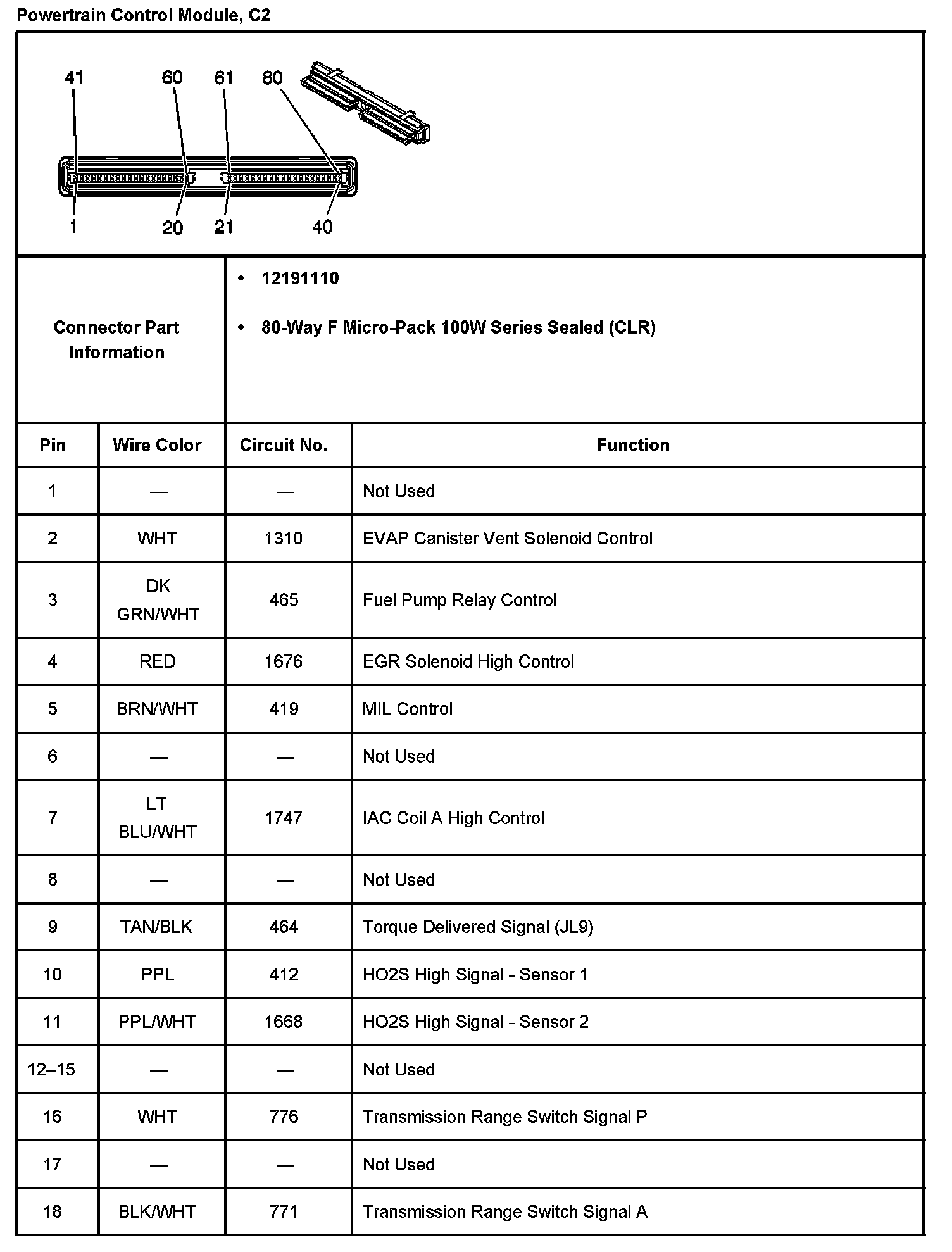 Powertrain Control Module, C2 Part 1: