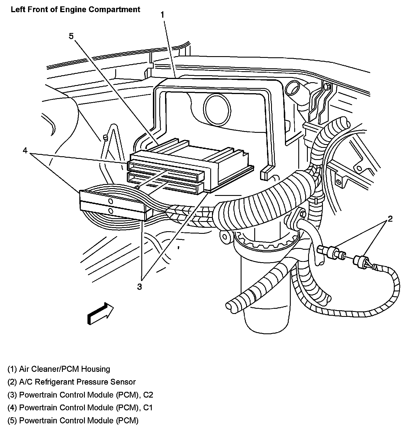 Left Front Of Engine Compartment: