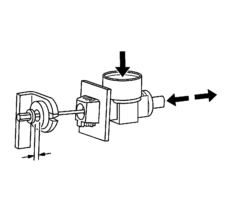 4. Press the cable adjuster button and adjust the cable so that the cable ball nipple is 0.5 mm (0.02 inch) from the bushing on the accelerator assembly.