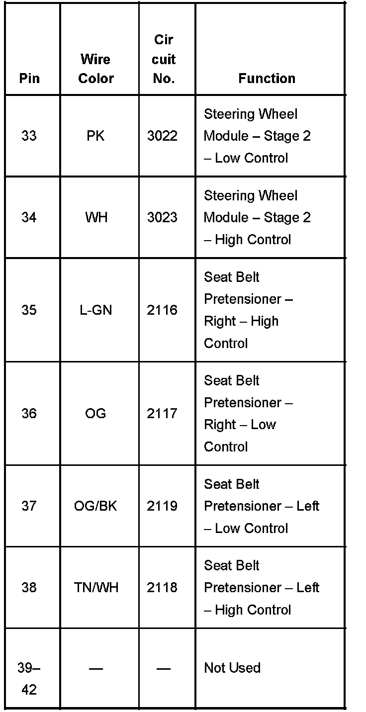 Home >> Chevrolet >> 2004 >> SSR V8-5.3L VIN P >> Repair and Diagnosis >> Diagrams >> Connector Views >> Air Bag Control Module