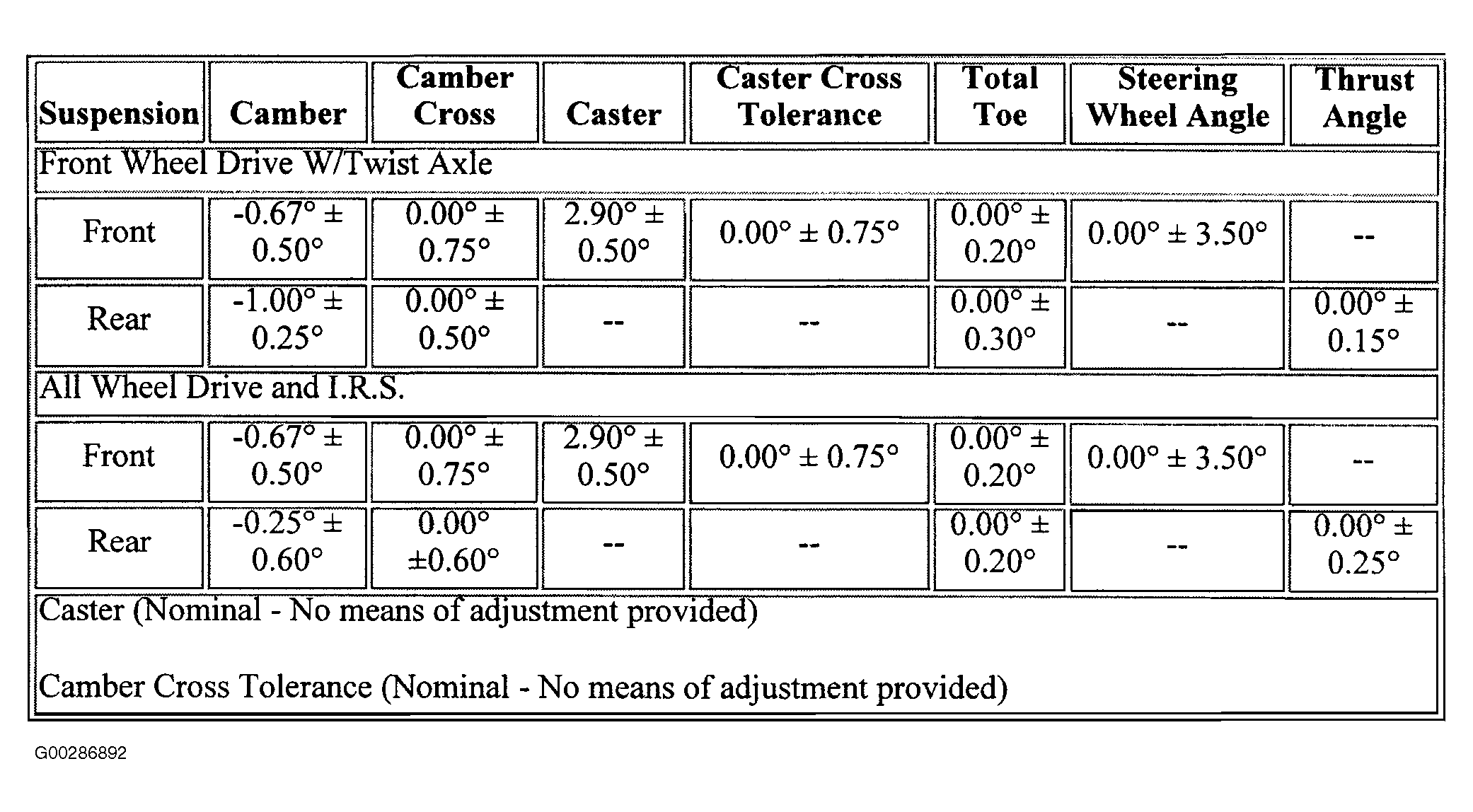 Wheel Alignment Specifications: Specifications