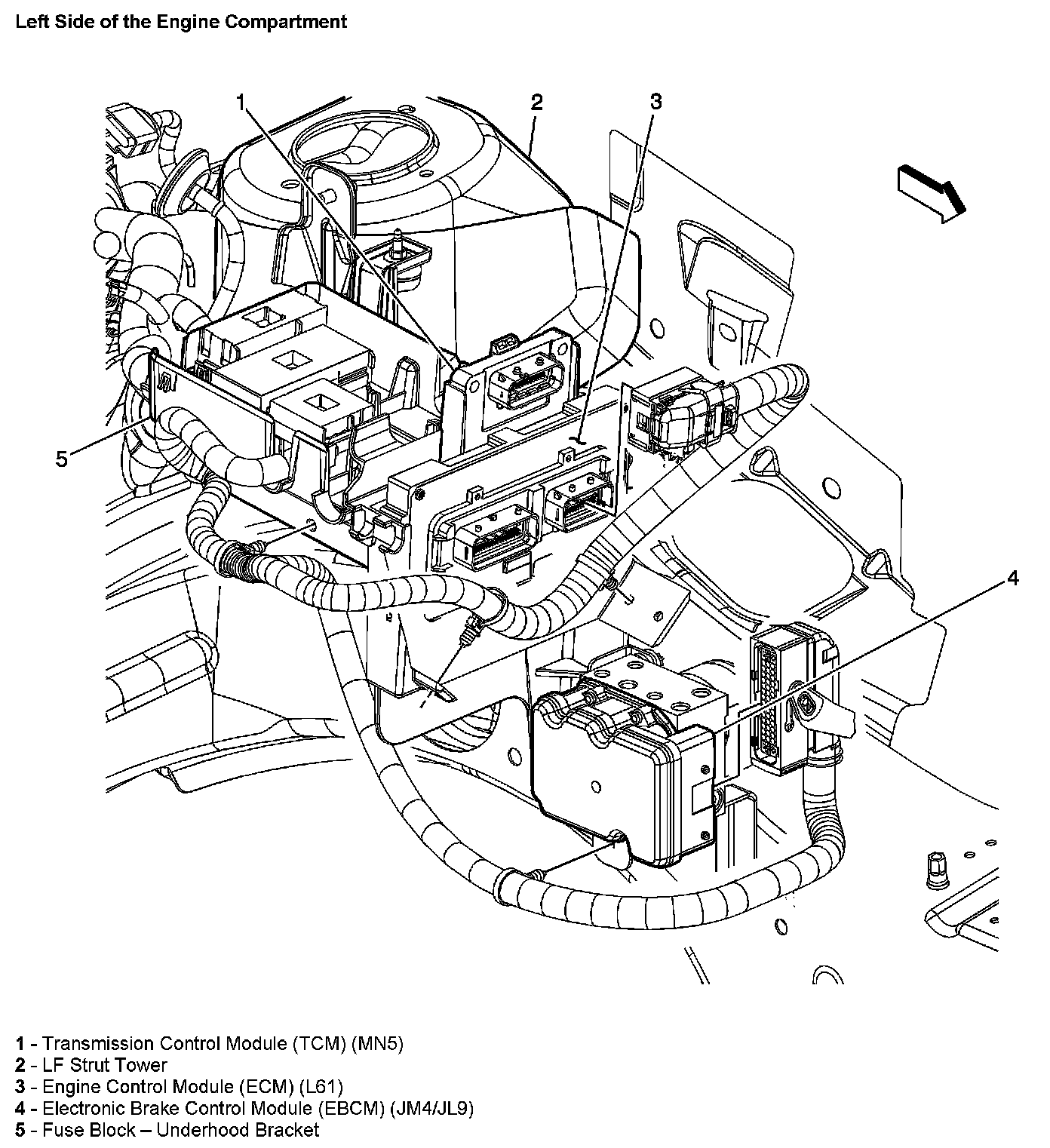 Left Side of the Engine Compartment: