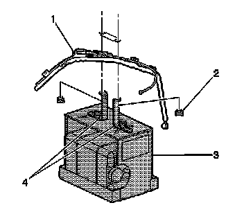 15. Connect the inflator module (1) to the adapter (2) on the SIR deployment harness (3).
