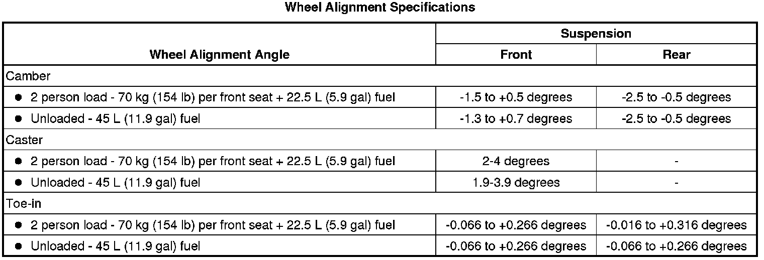 Wheel Alignment Specifications