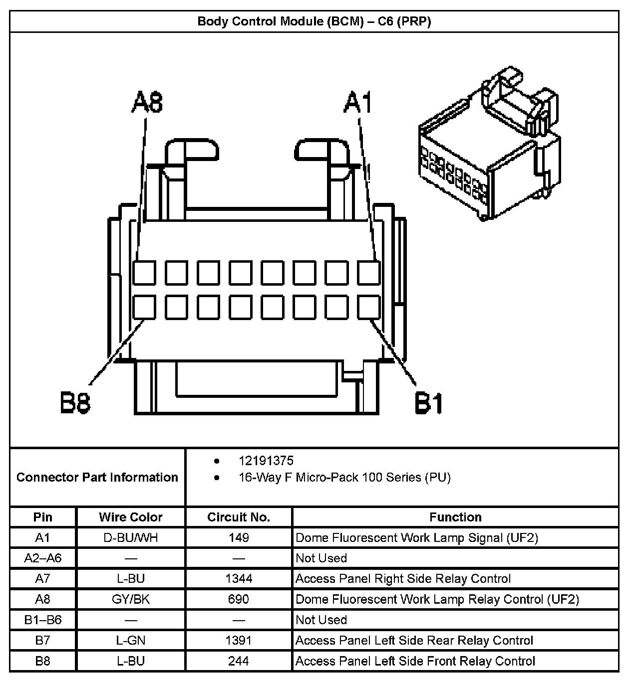 Body Control Module (BCM) - C6 (With RPO Code PRP):