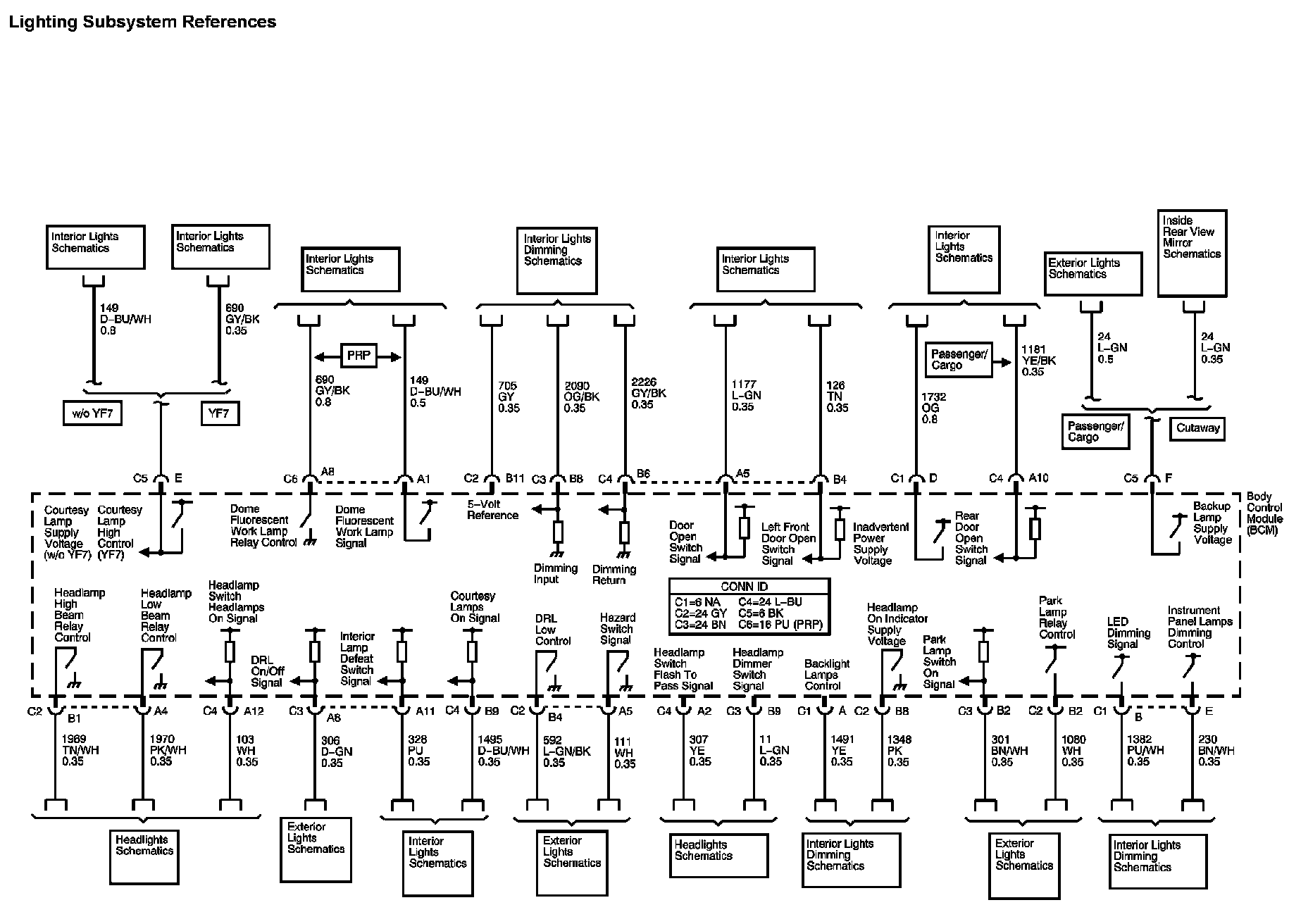 : The locations for the Connectors, Grounds, Splices, and Grommets shown within these diagrams can be found via their numbers at vehicle locations.