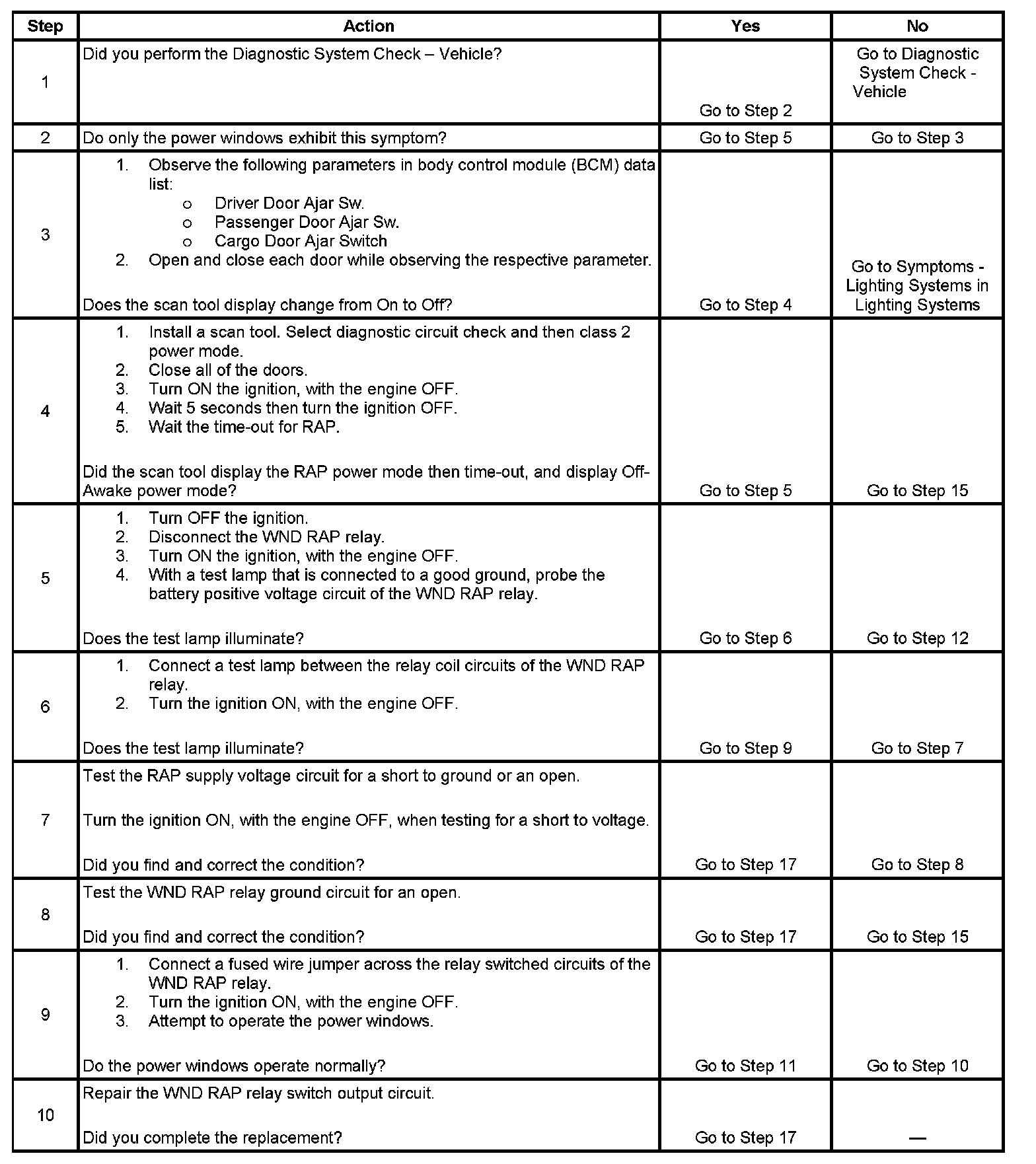 Retained Accessory Power (RAP) Inoperative