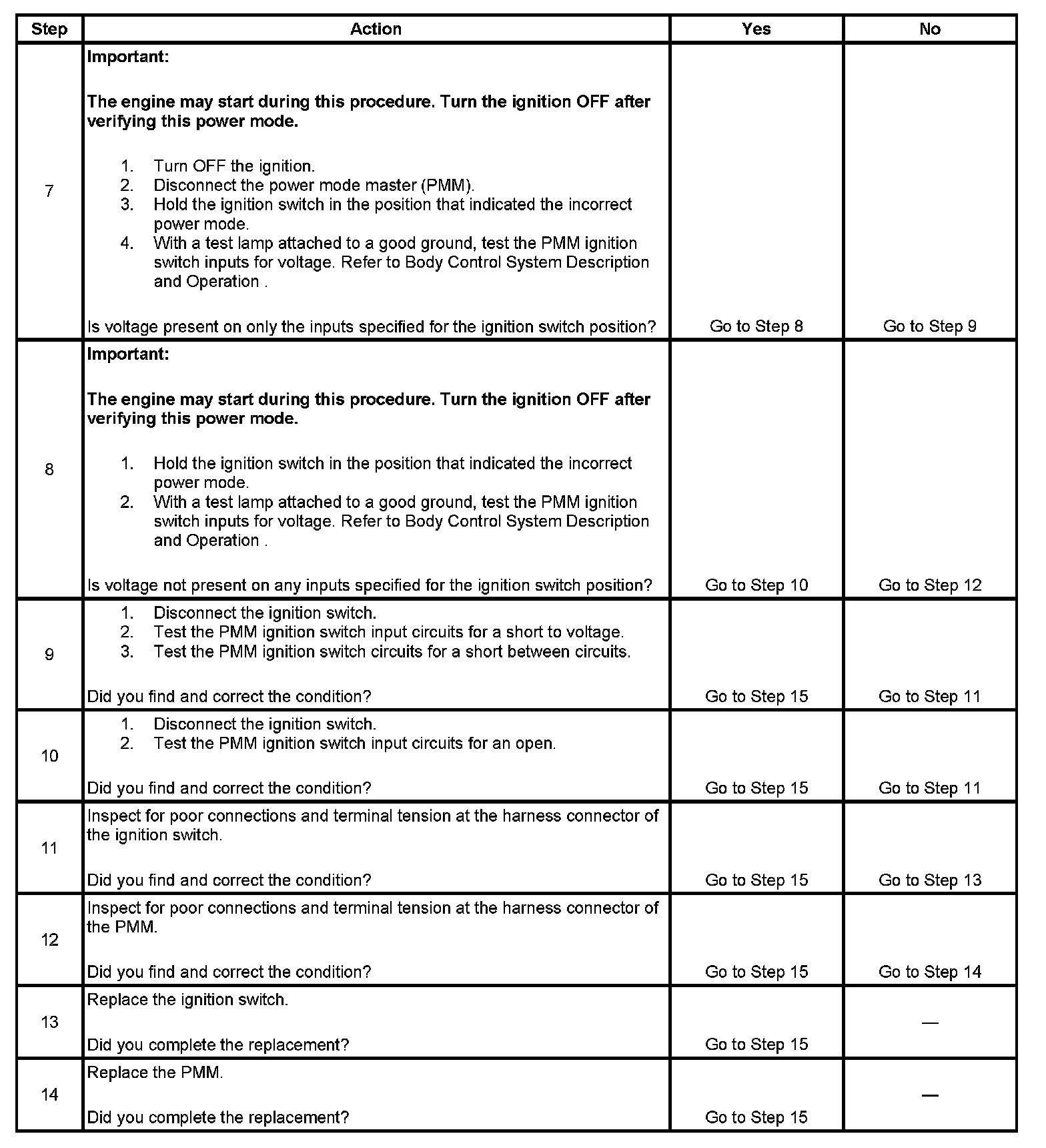 9. If any ignition switch parameters that should be inactive in the present ignition switch position are active, 2 ignition switch signal circuits may be shorted together.
