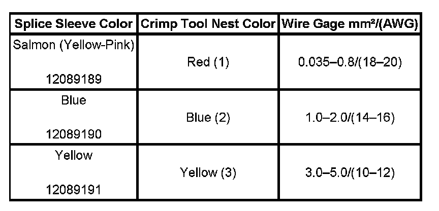 4. Select the proper duraseal splice sleeve according to the wire size. Refer to the above table at the beginning of the repair procedure for the color coding of the duraseal splice sleeves and the crimp tool nests.