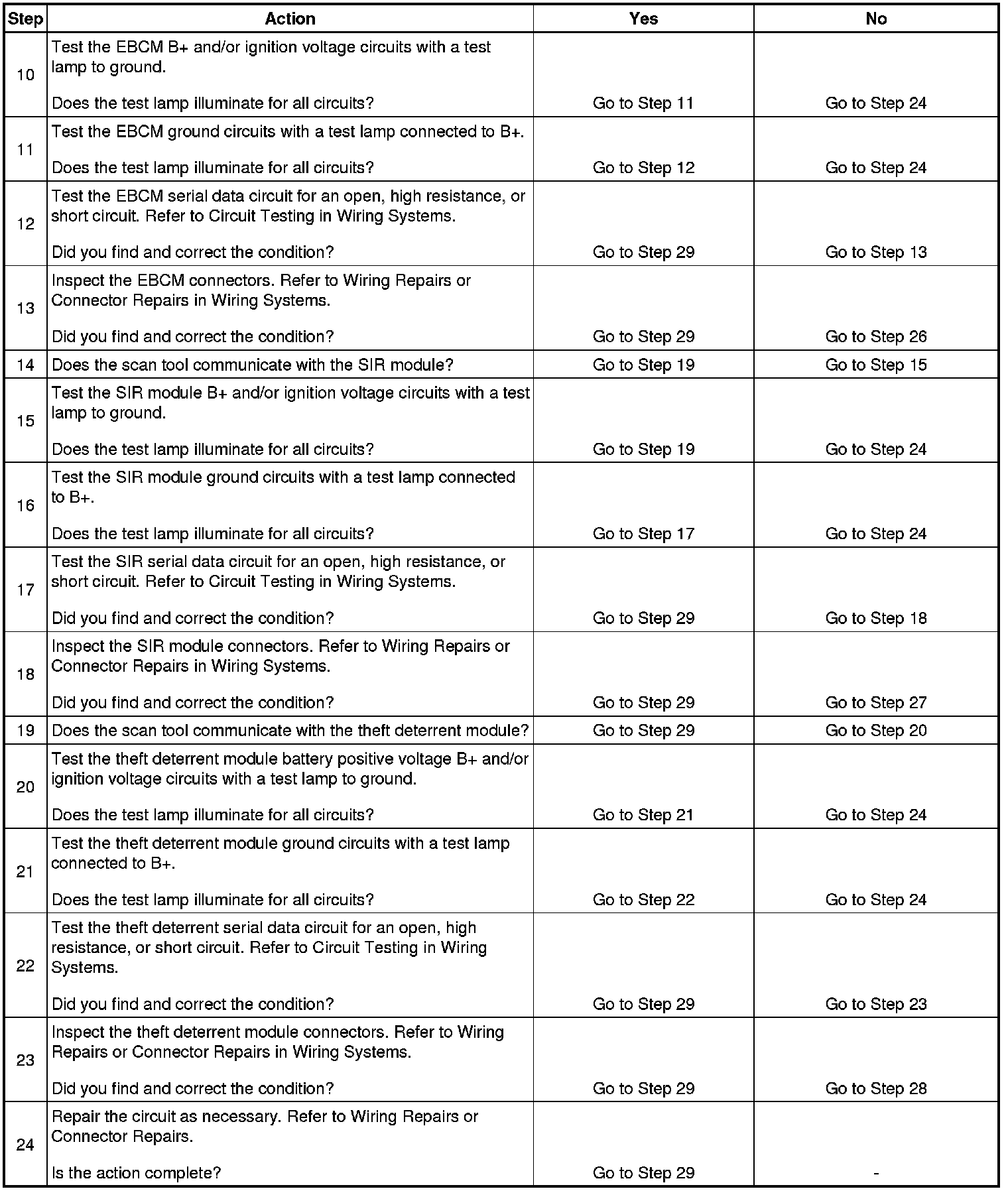 This step checks to see if the theft deterrent-immobilizer system is not communicating with the scan tool.