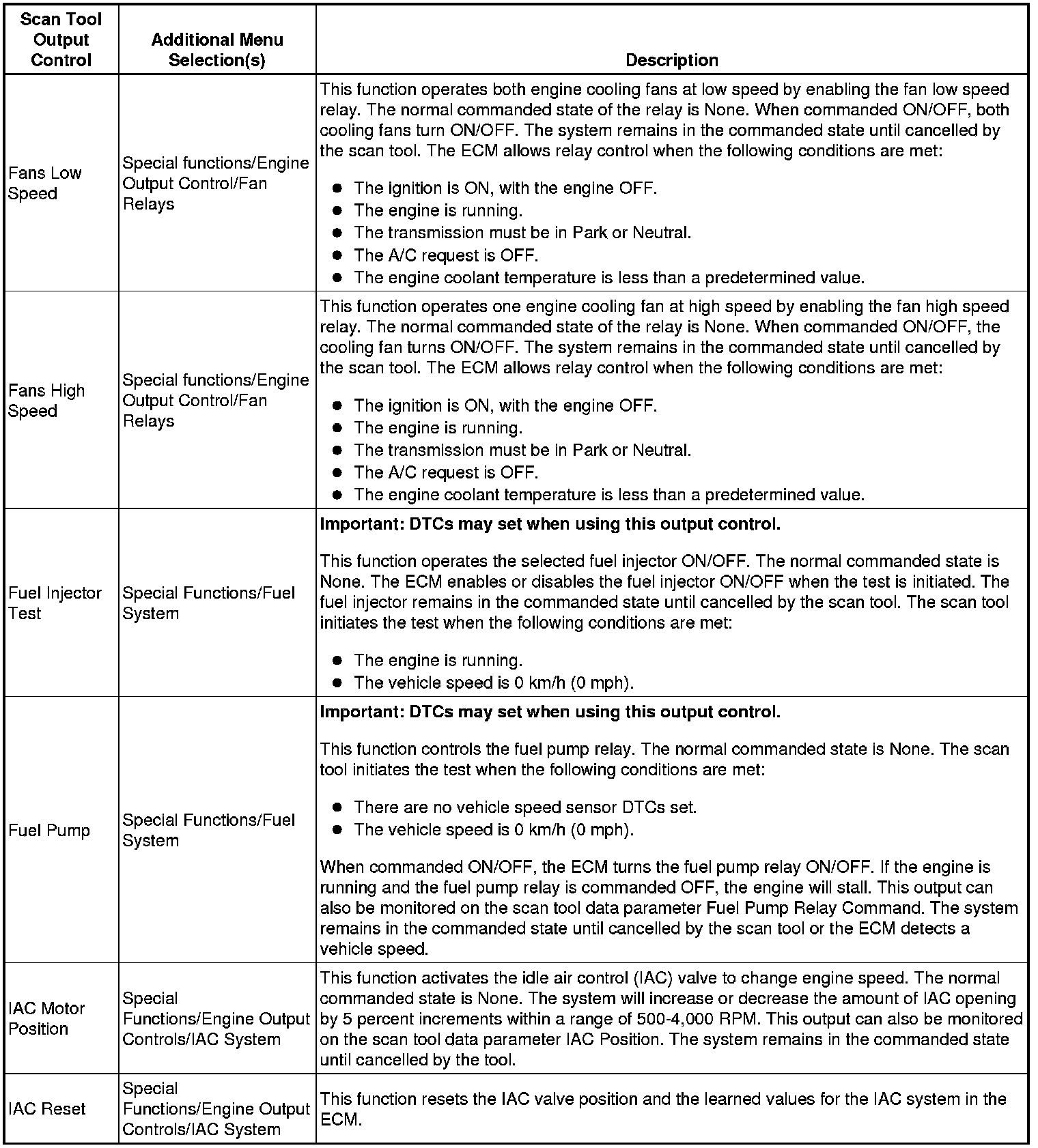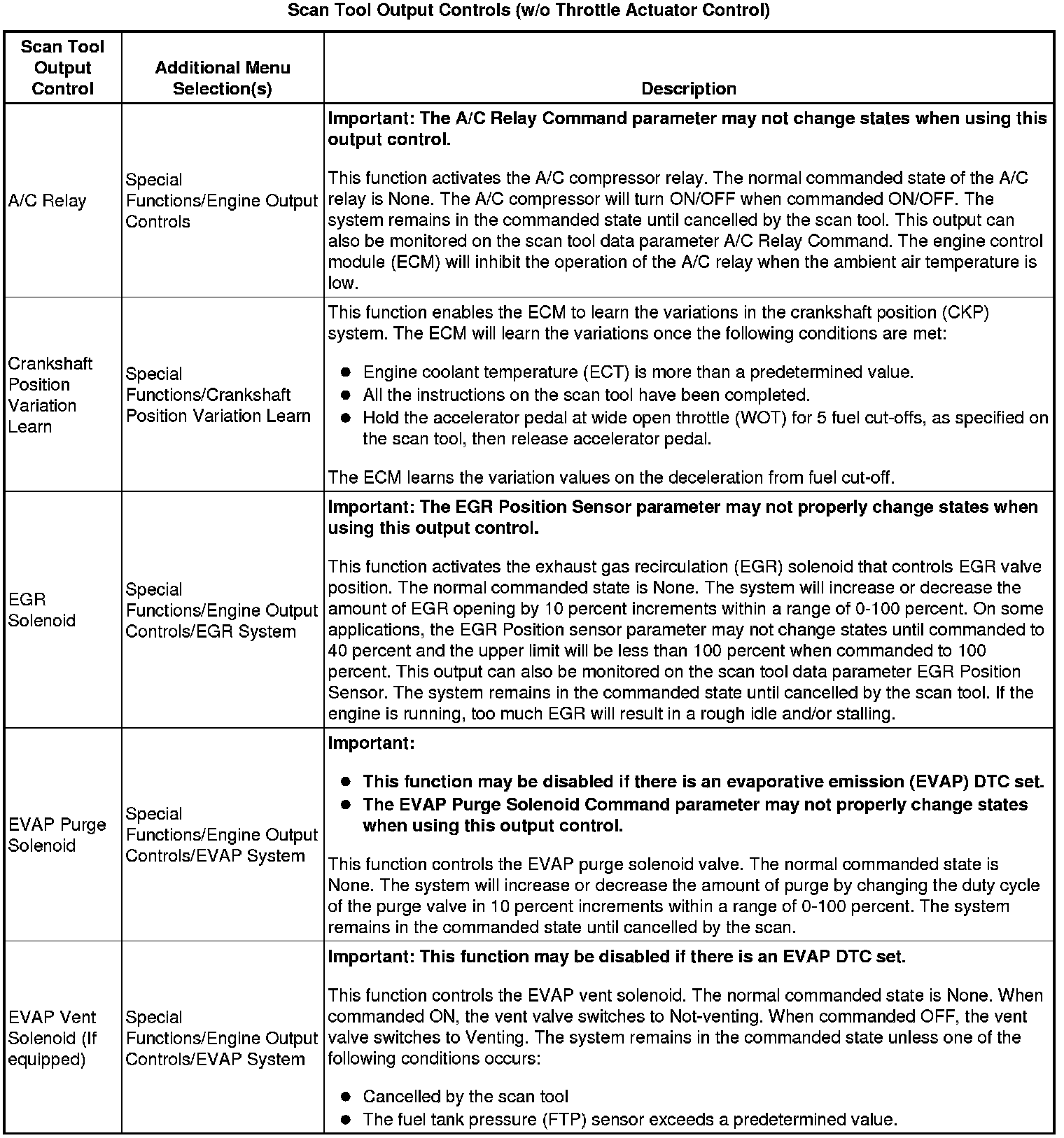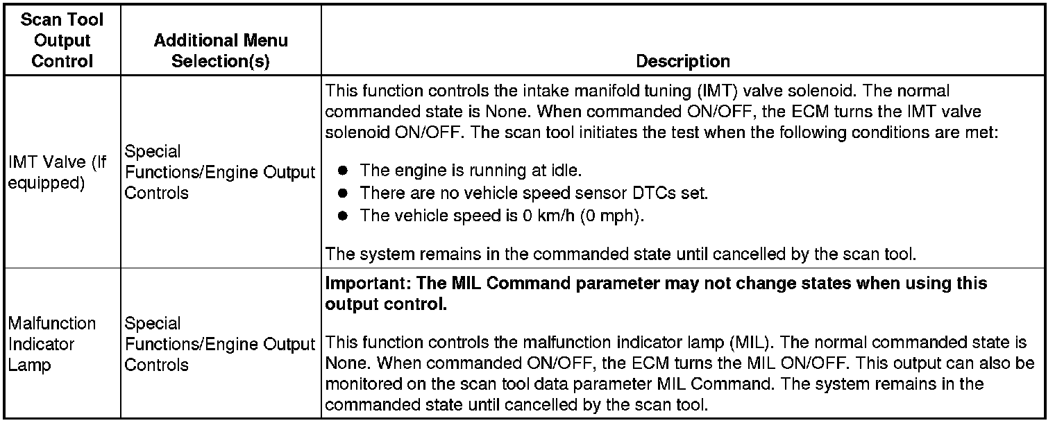 Scan Tool Output Controls (w/o Throttle Actuator Control)