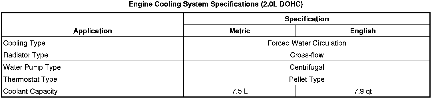 Specifications (2.0L DOHC)