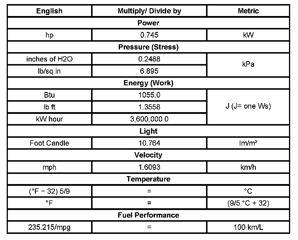 Conversion - English/Metric