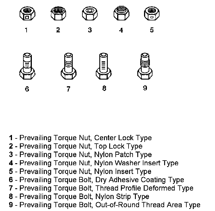 These fasteners accomplish the thread interface by the presence of a thread-locking compound on the fastener threads. Refer to the appropriate repair procedure in order to determine if the fastener may be reused and the applicable thread-locking compound to apply to the fastener.
