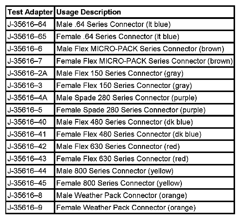 Refer to the table as a guide in selecting the correct test adapter for frontprobing connectors: