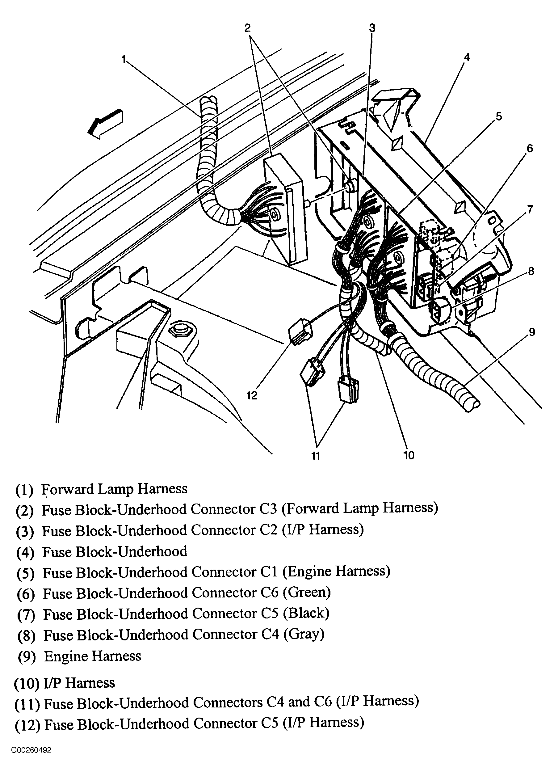 | Underhood Fuse Block Connectors C4 And C6 (I/P Harness) | Near underhood fuse block. See Figure . |