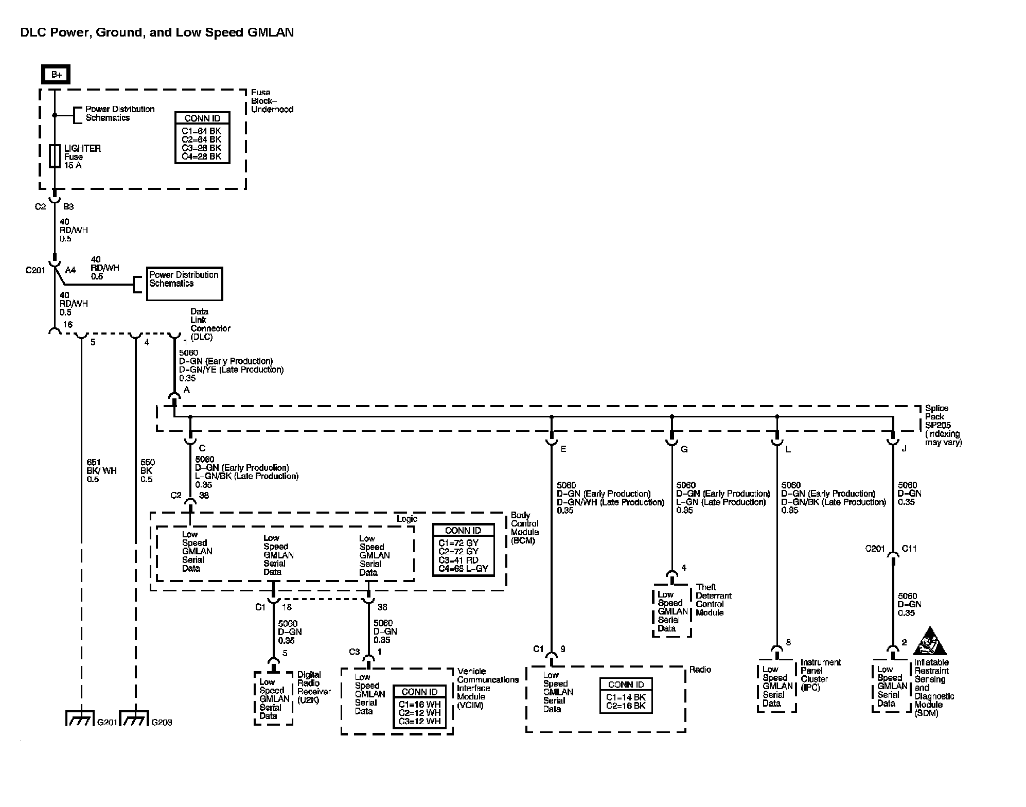 Location: The locations for the Connectors, Grounds, Splices, and Grommets shown within these diagrams can be found via their numbers at Vehicle Locations. Locations