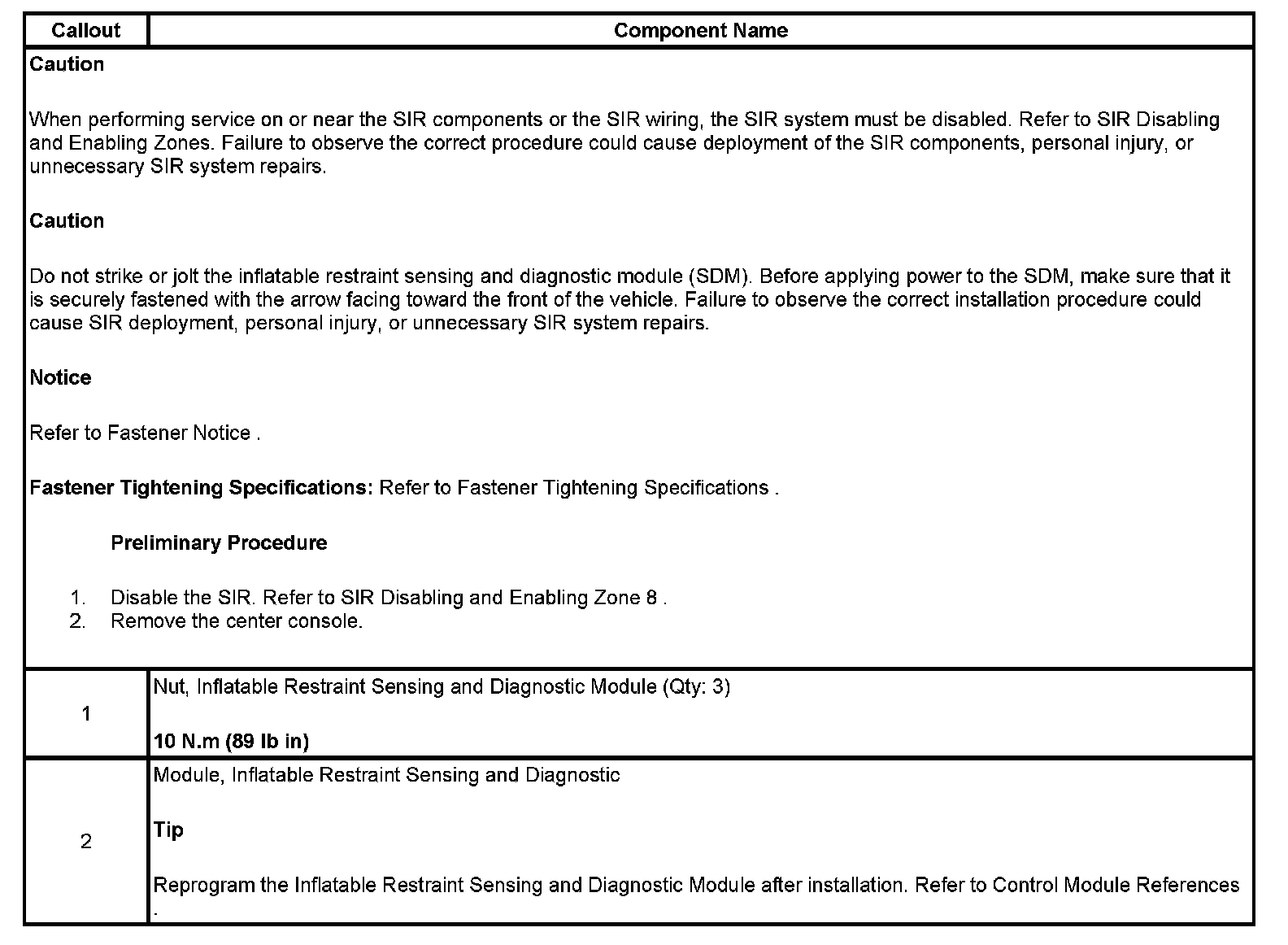 Air Bag Control Module: Service and Repair