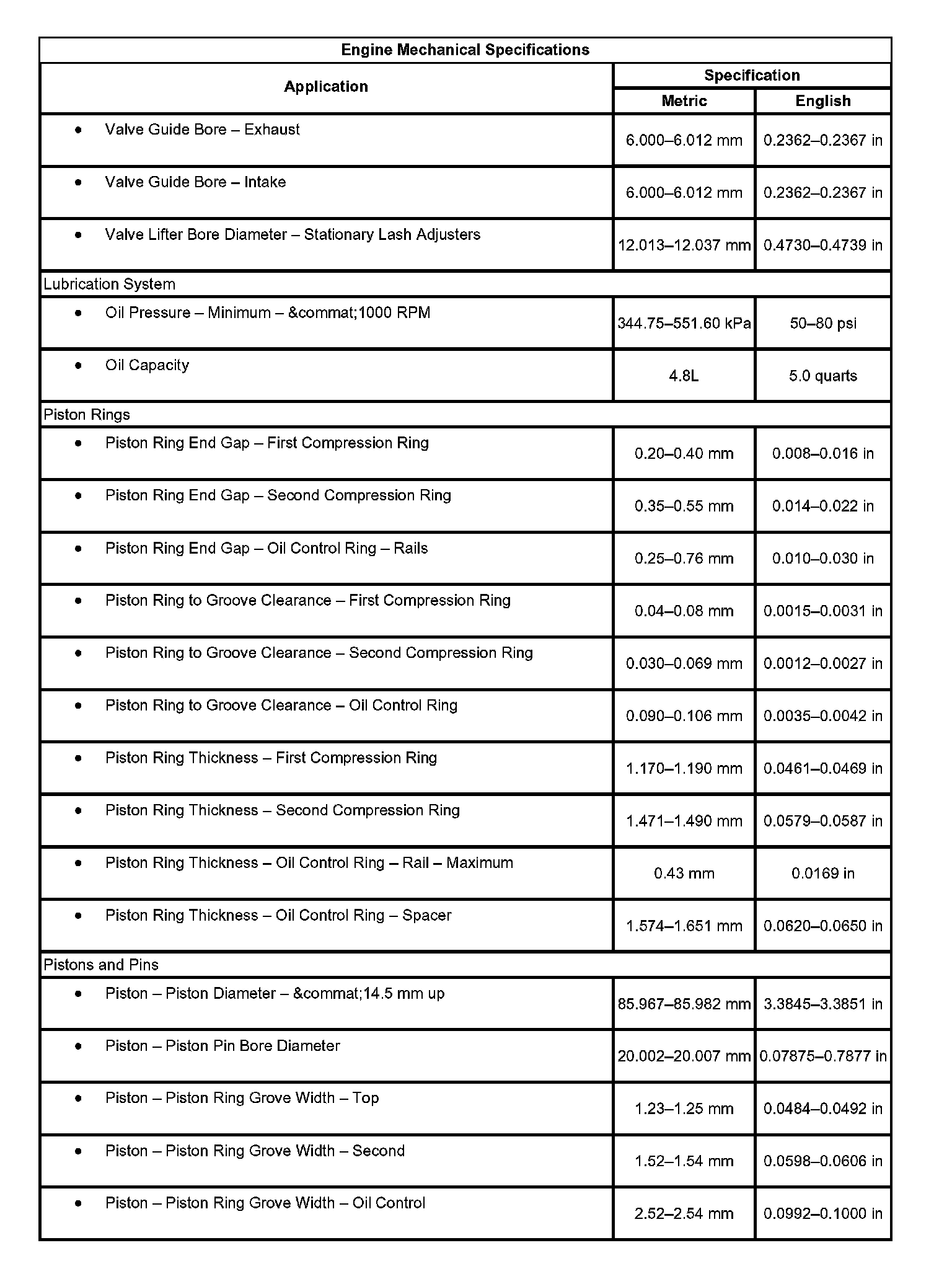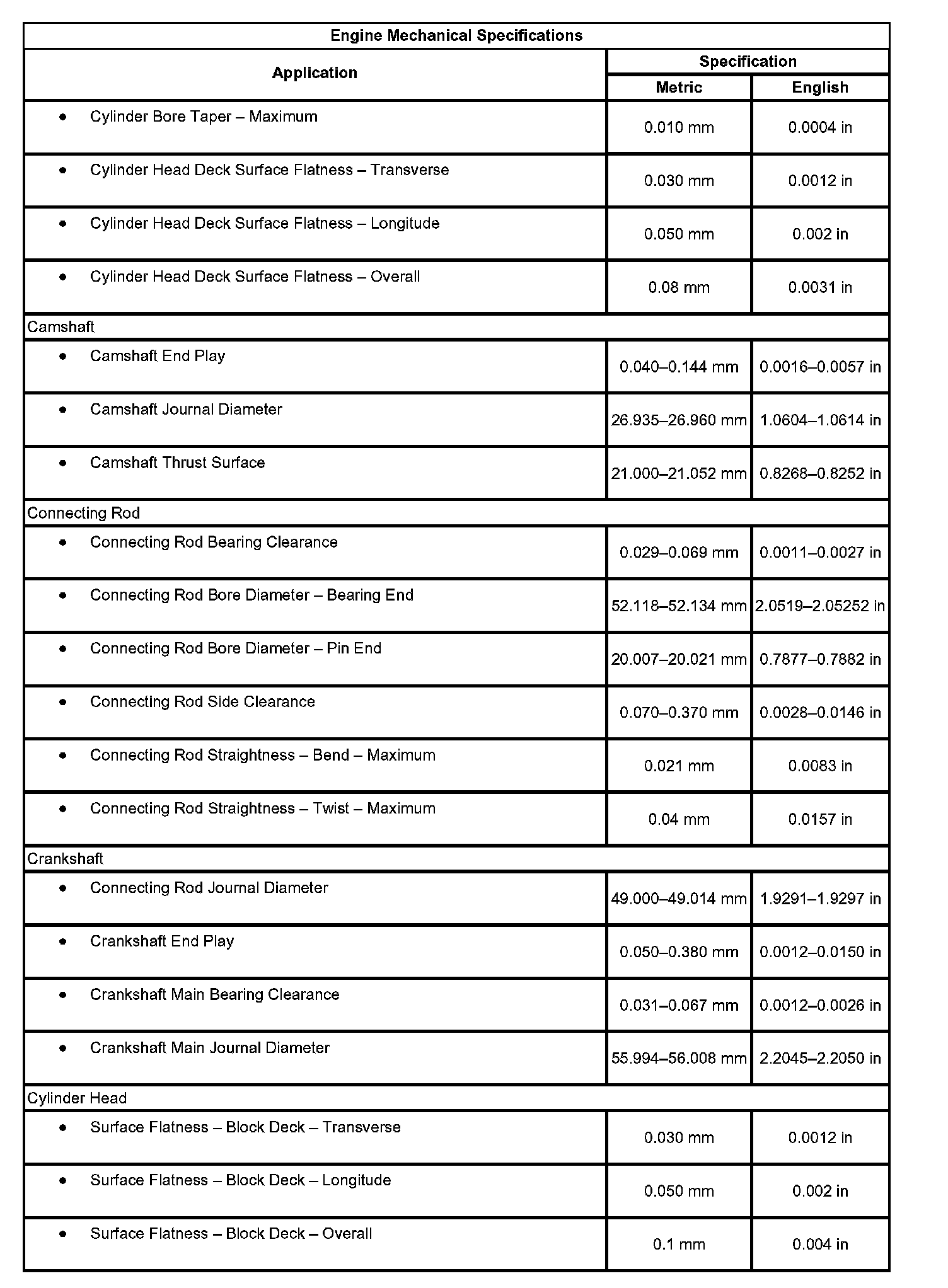 Engine Mechanical Specifications: