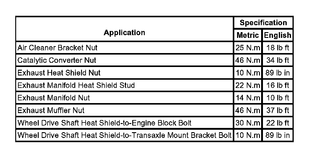 Fastener Tightening Specifications: