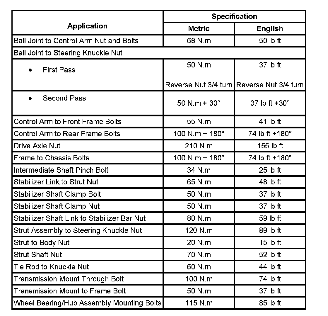 Fastener Tightening Specifications: