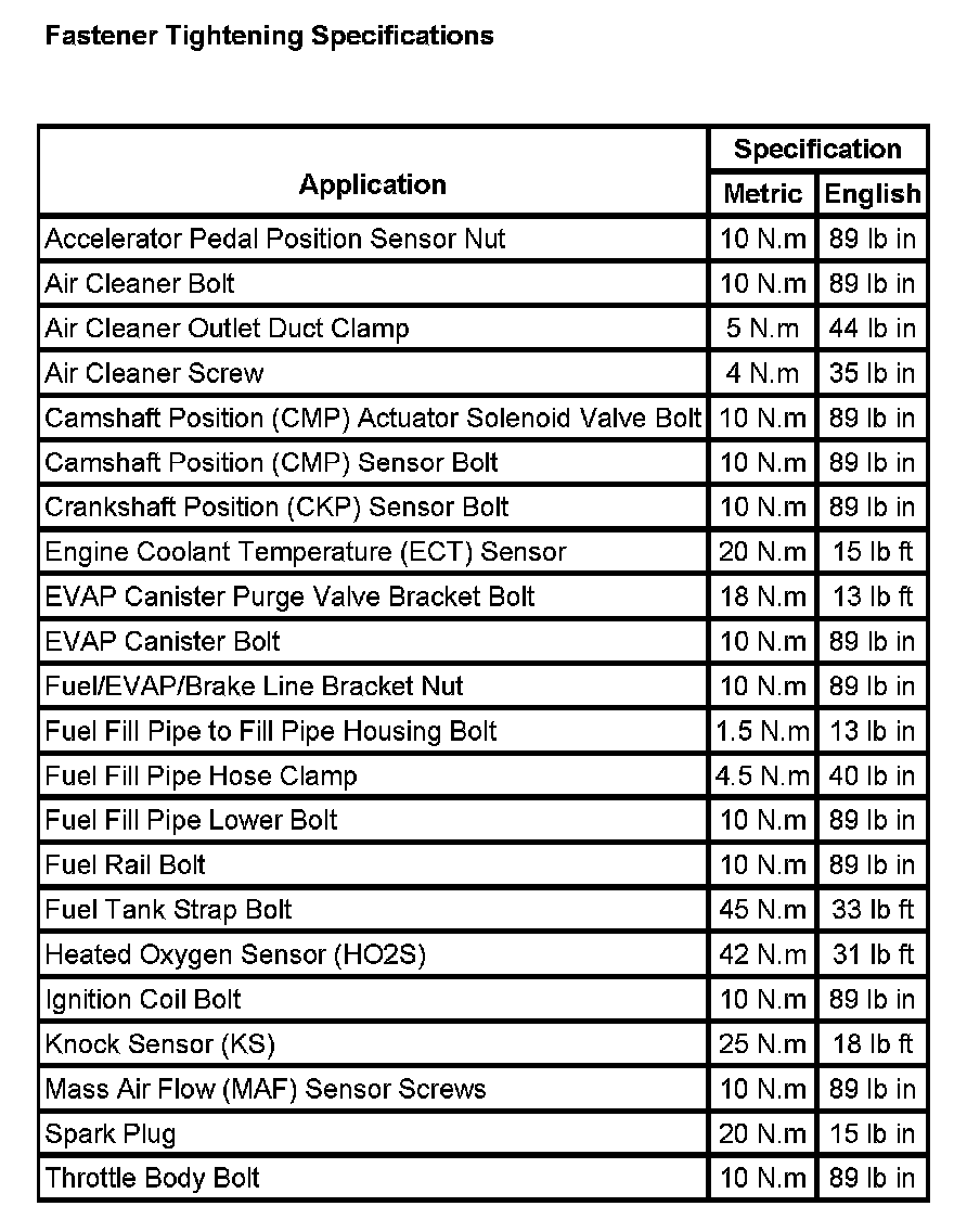 Fastener Tightening Specifications: