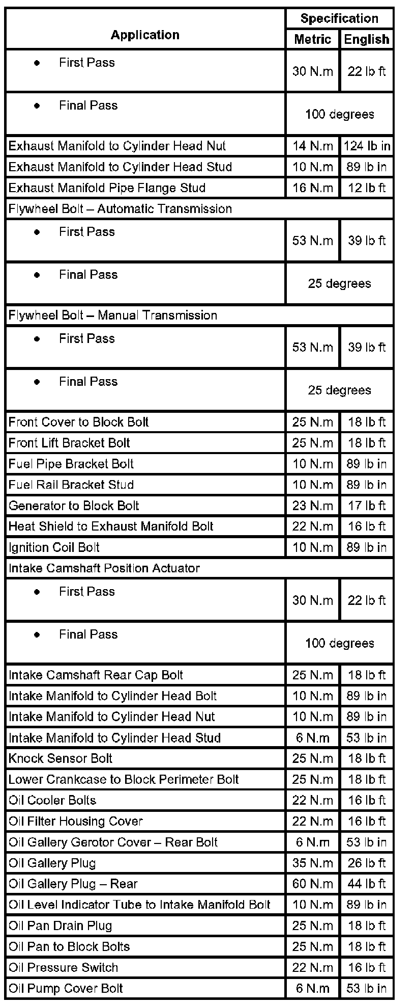 Fastener Tightening Specifications: