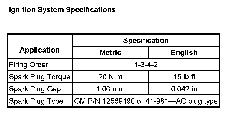 Ignition System Specifications: