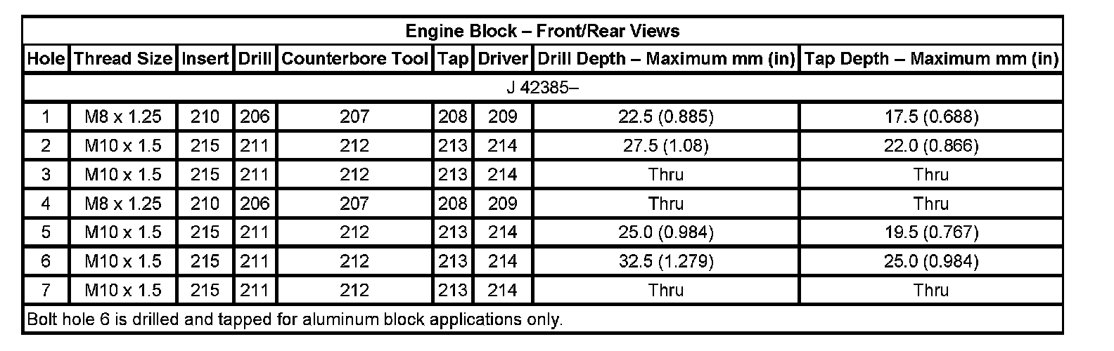 Thread Repair Specifications Engine Block: