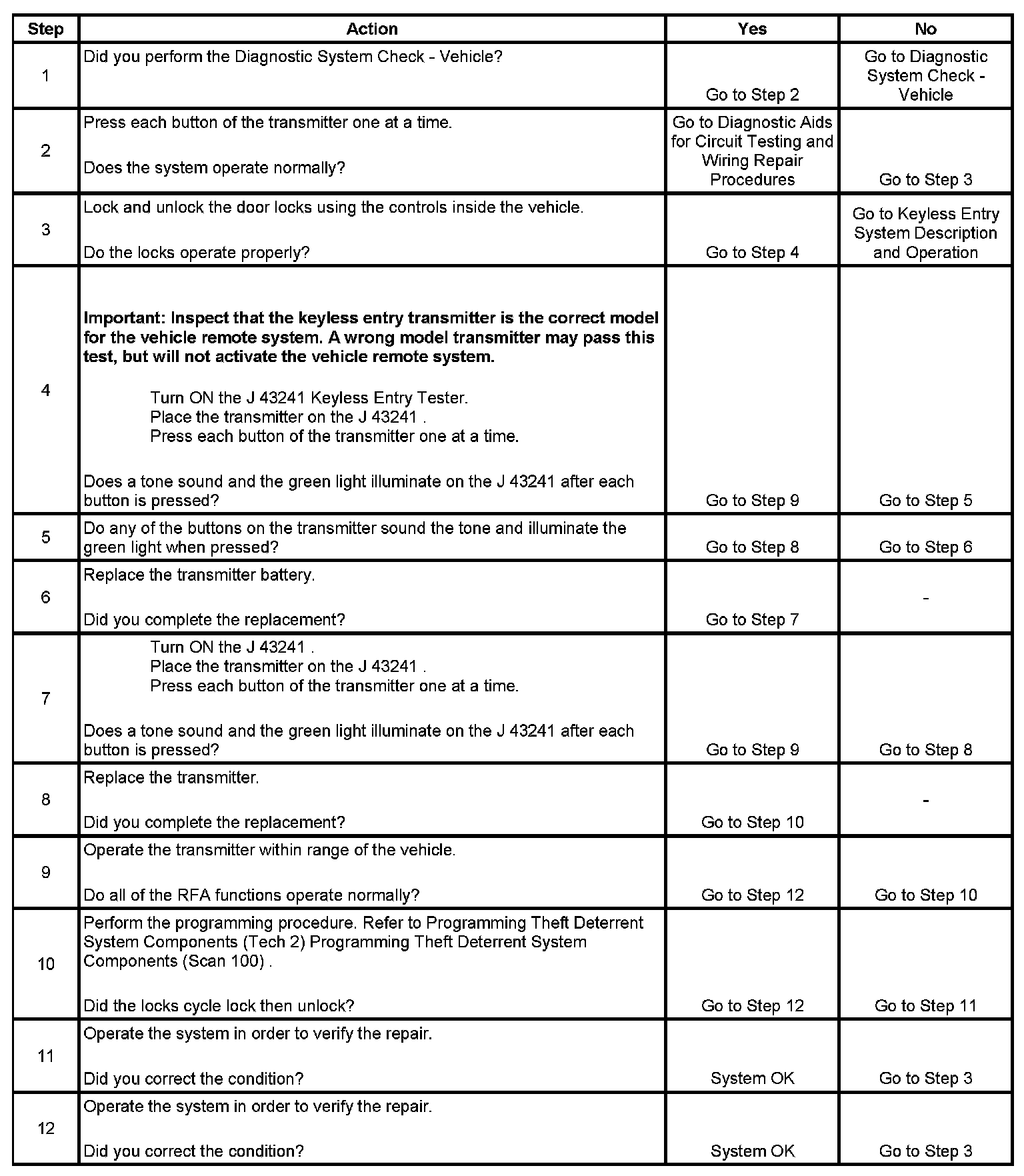 Keyless Entry Does Not Program