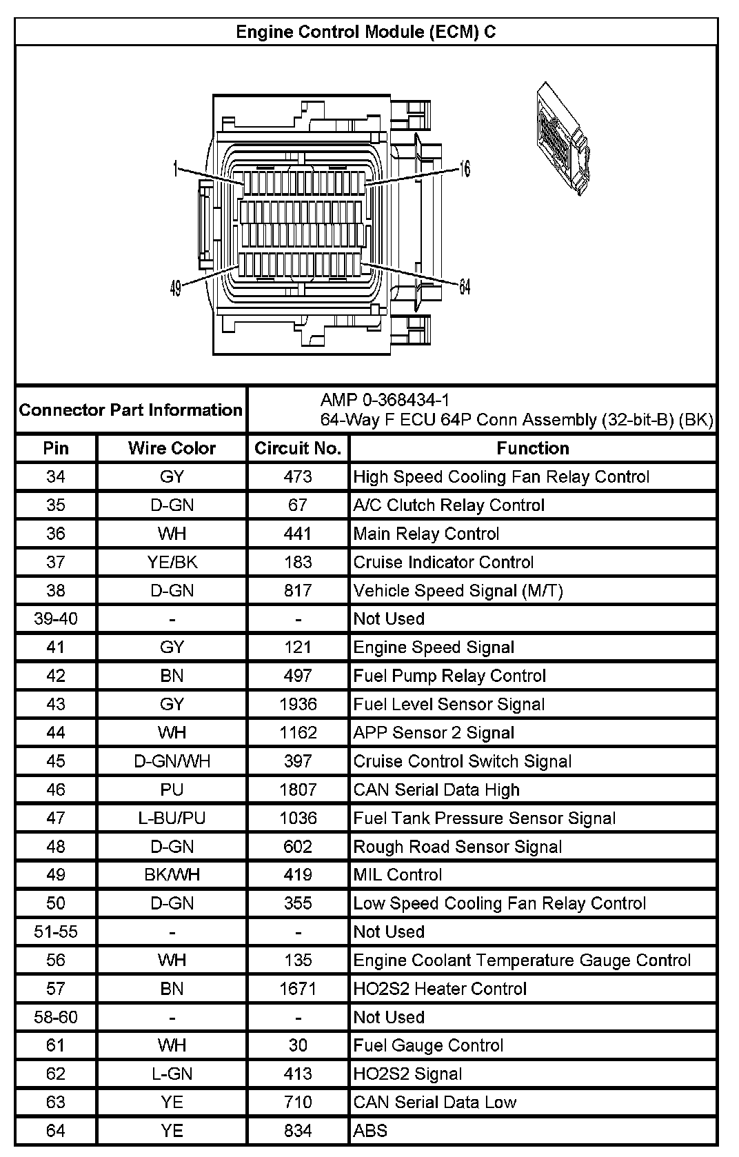 Engine Control Module (ECM) C (Pin 34 To 64):