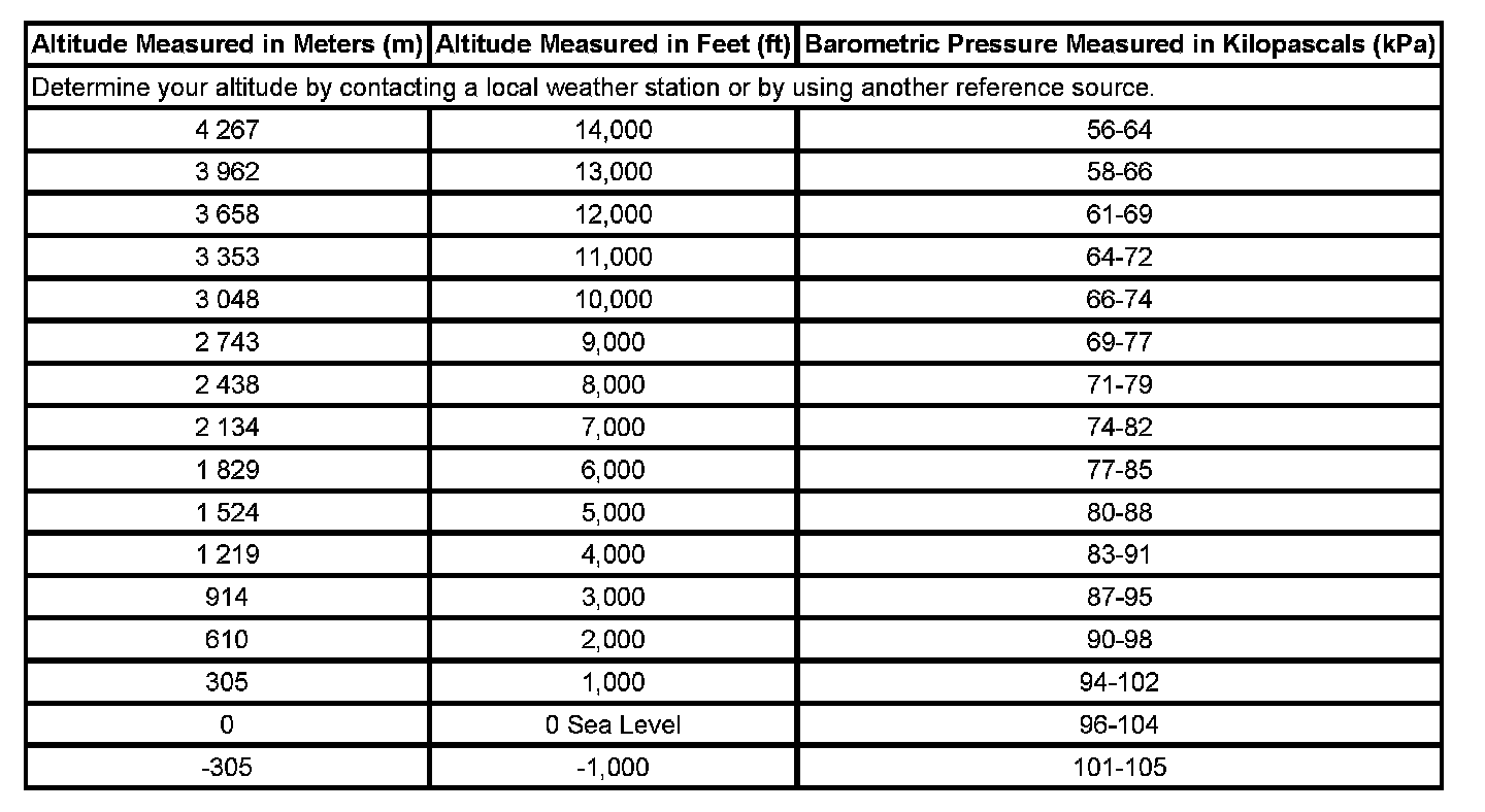 Altitude Versus Barometric Pressure