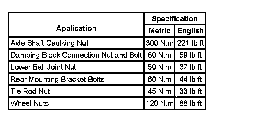 Fastener Tightening Specifications: