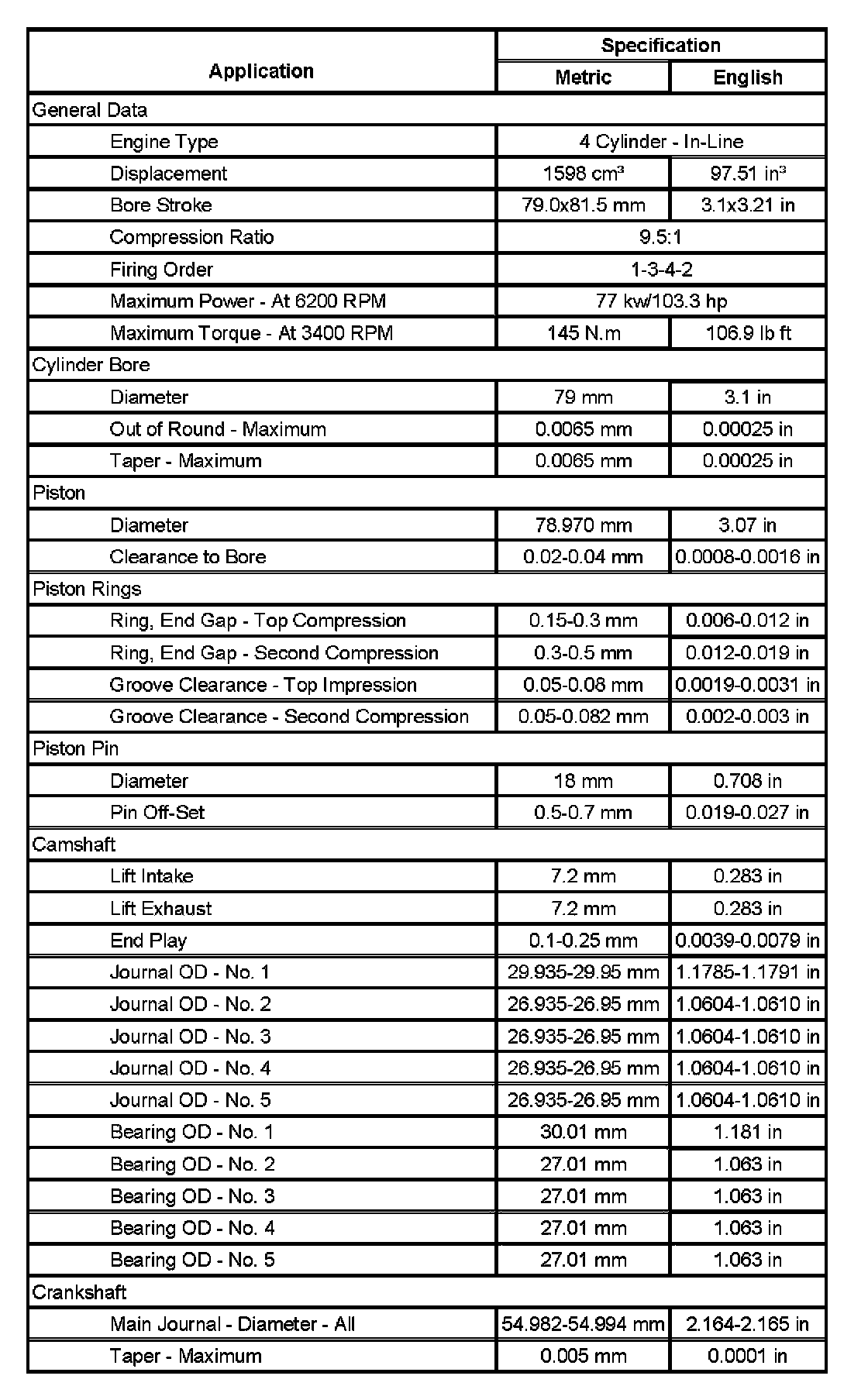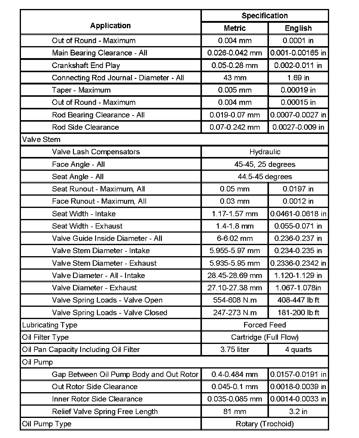 Engine Mechanical Specifications