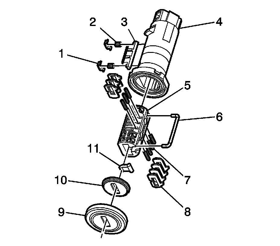 Important: The ignition lock cylinder tumblers (3) are not self-retaining and must be held in place if the key is not fully inserted into the lock cylinder.