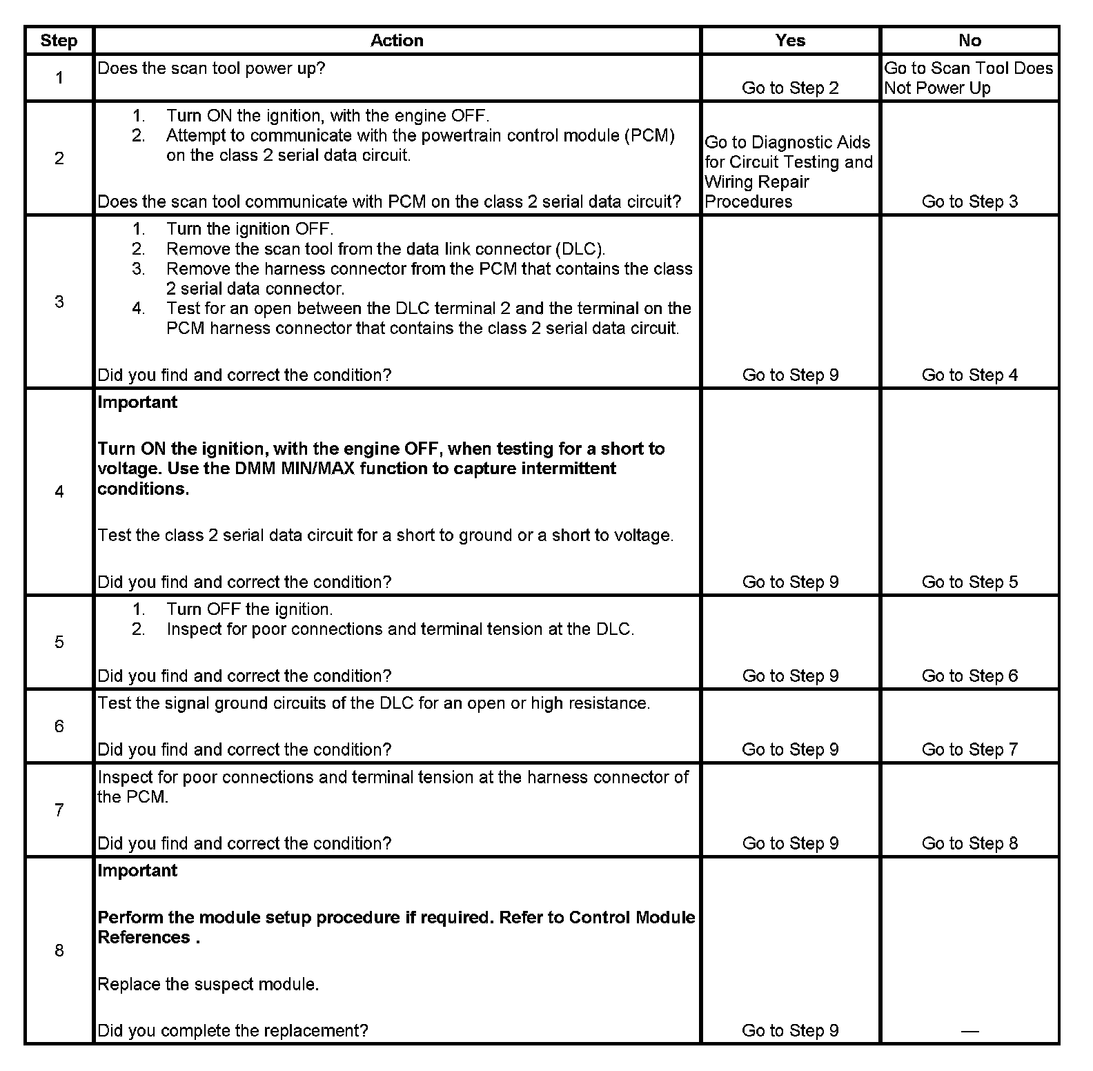 2. A partial loss or intermittent loss of communication in the class 2 serial data circuit uses a different procedure than a total loss of communication of the class 2 serial data circuit.