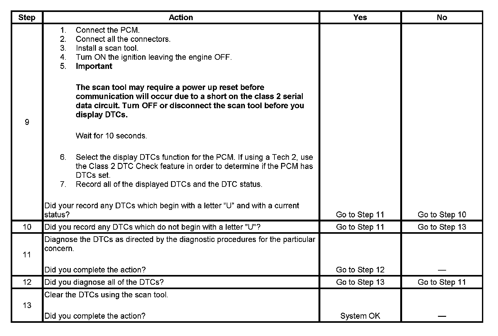 The powertrain control module (PCM) is connected to the class 2 serial data circuit. The class 2 serial data circuit is used for diagnostic purposes only in this vehicle. Connecting a scan tool to the data link connector (DLC) allows communication with the PCM for diagnostic purposes. DTCs may be set due to this symptom and during this diagnostic procedure. Complete the diagnostic procedure in order to ensure all the DTCs are diagnosed and cleared from memory.