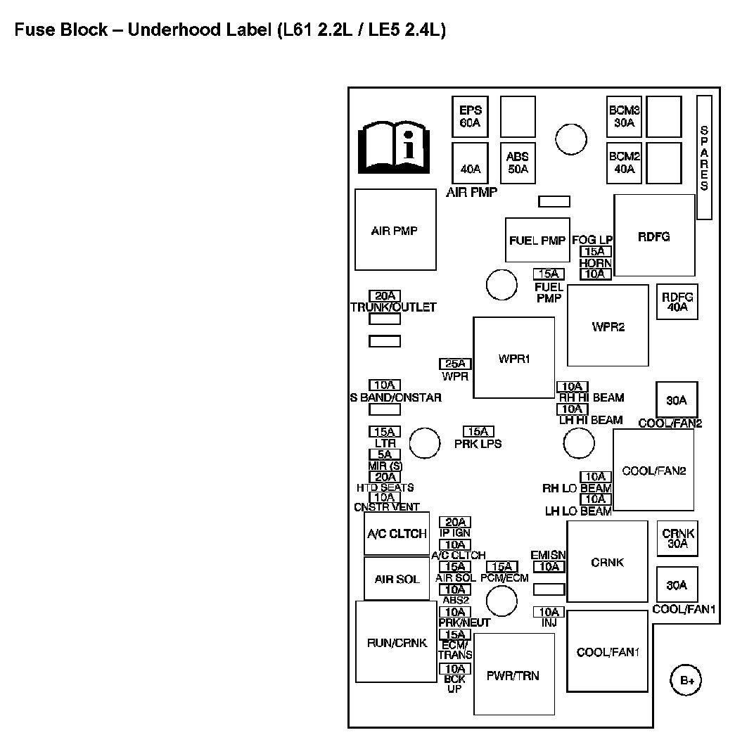 Fuse Block - Underhood Label (With RPO Code L61 2.2L / LE5 2.4L):