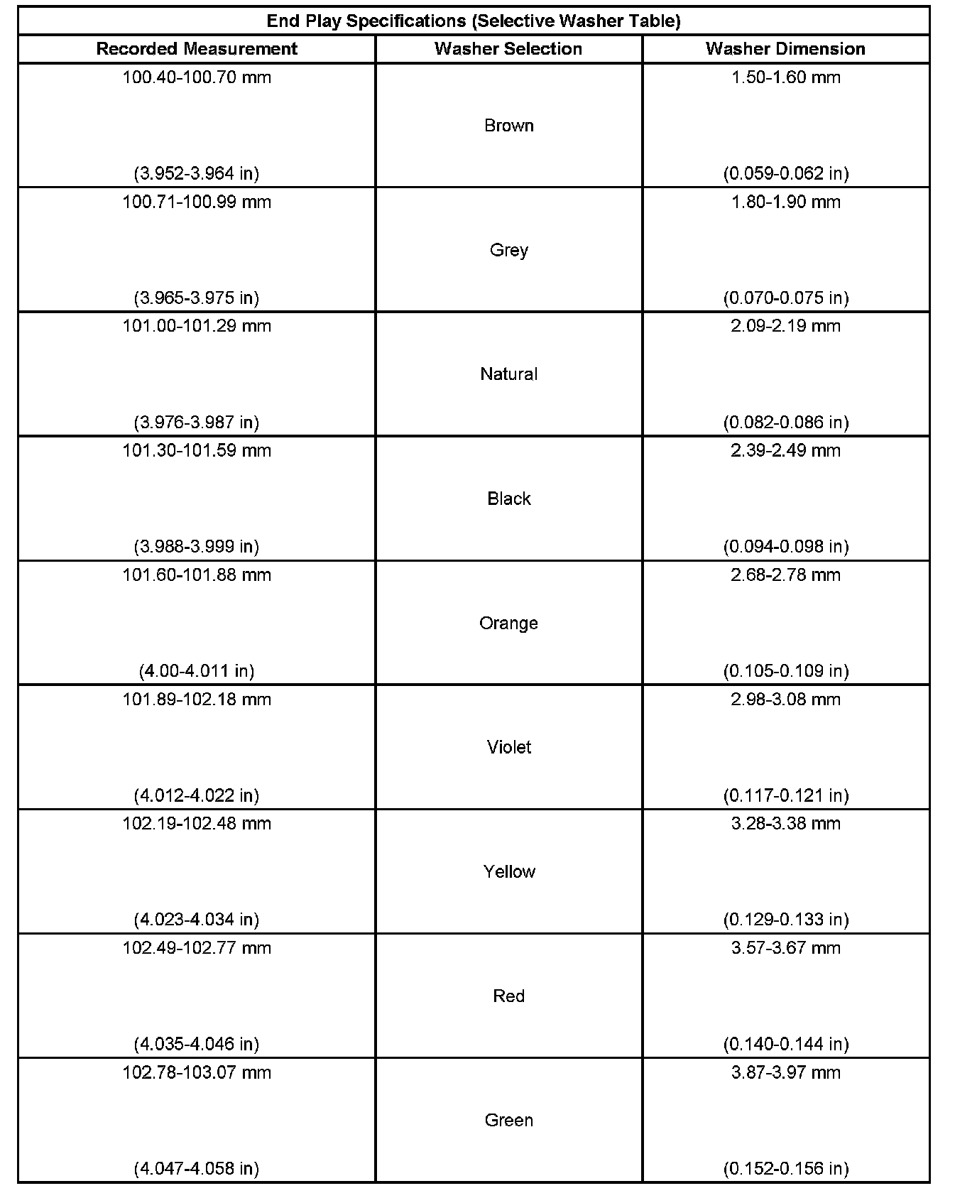 End Play Specifications: