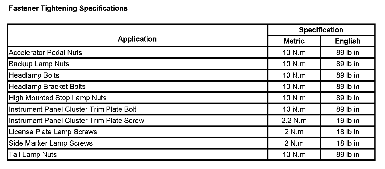 Fastener Tightening Specifications:
